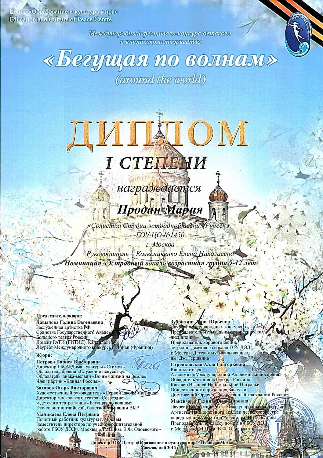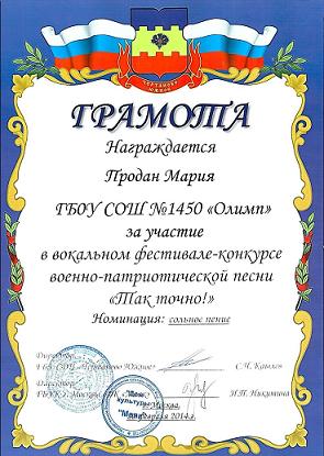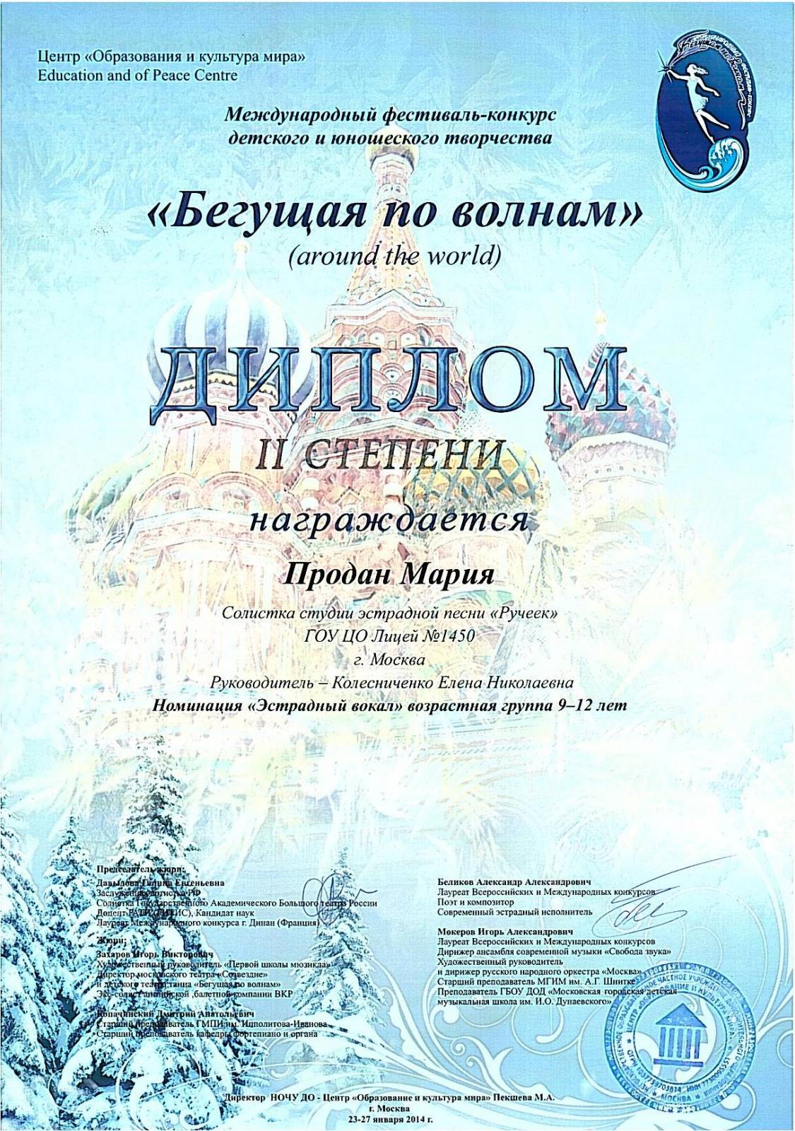 Пегарева Мария победитель-дипломант ЮДМ 2014