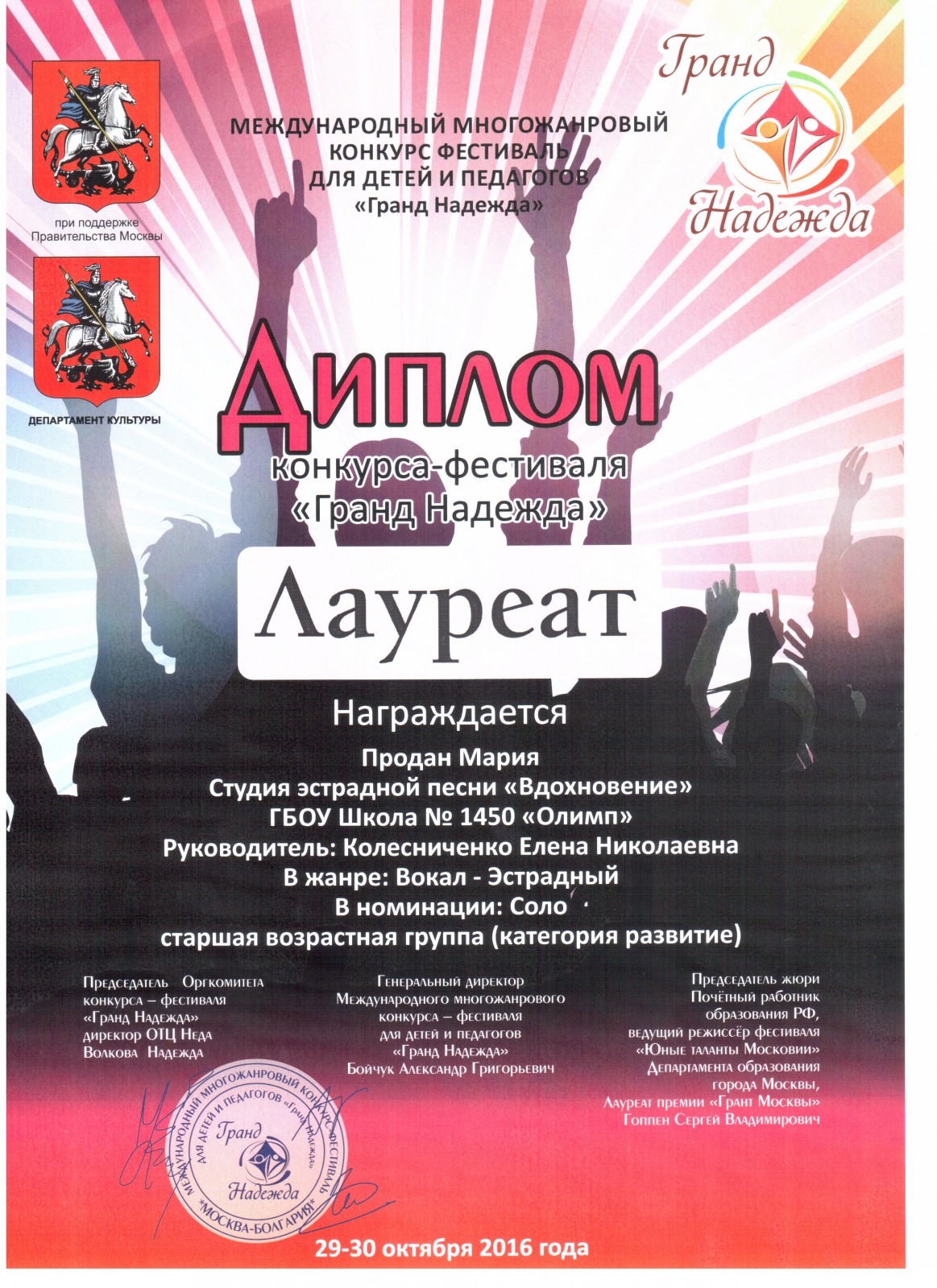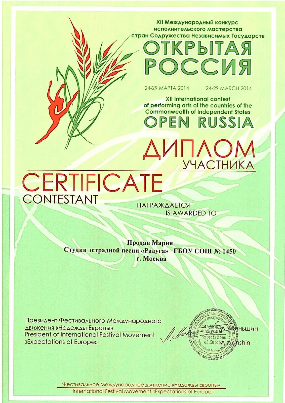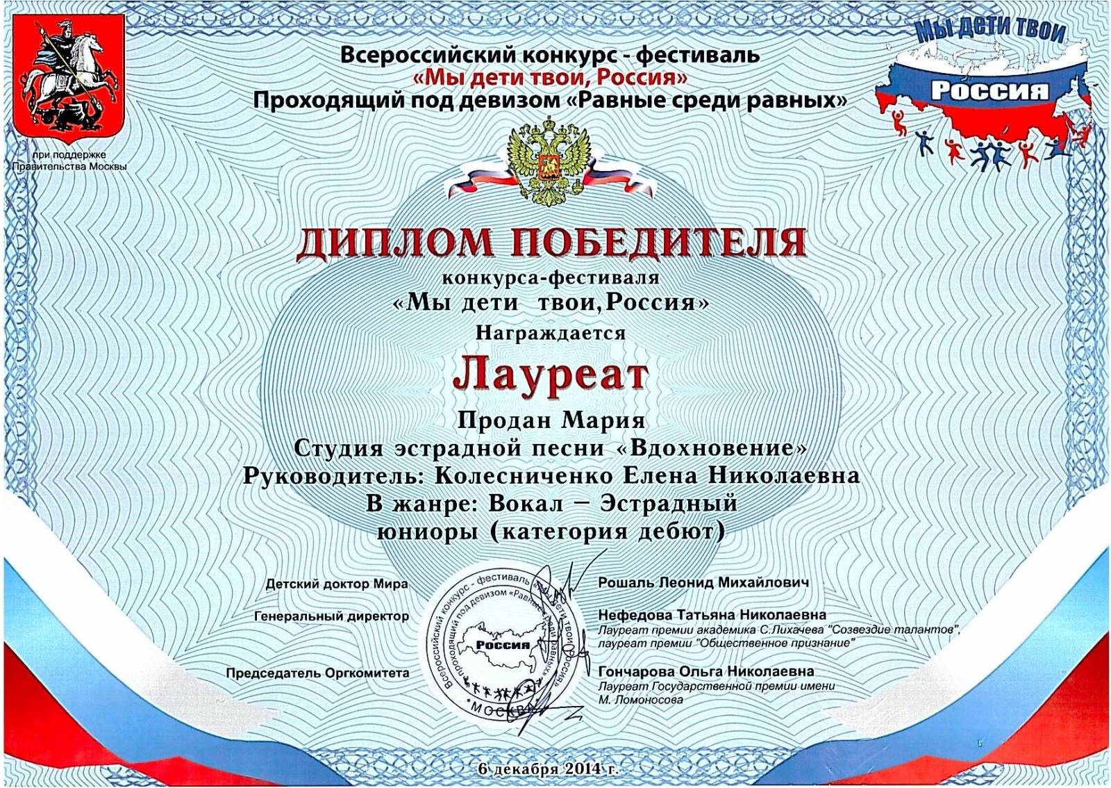 Продан Мария победитель-Дипломант ЮДМ осень 2014