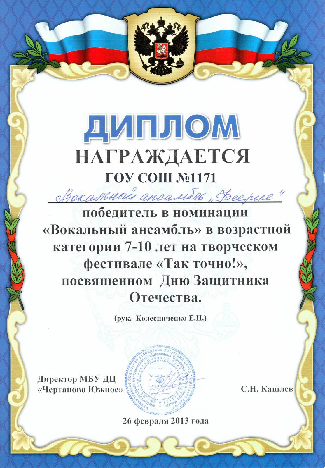 Диплом победителя анс. Феерия [Так точно!-2013]