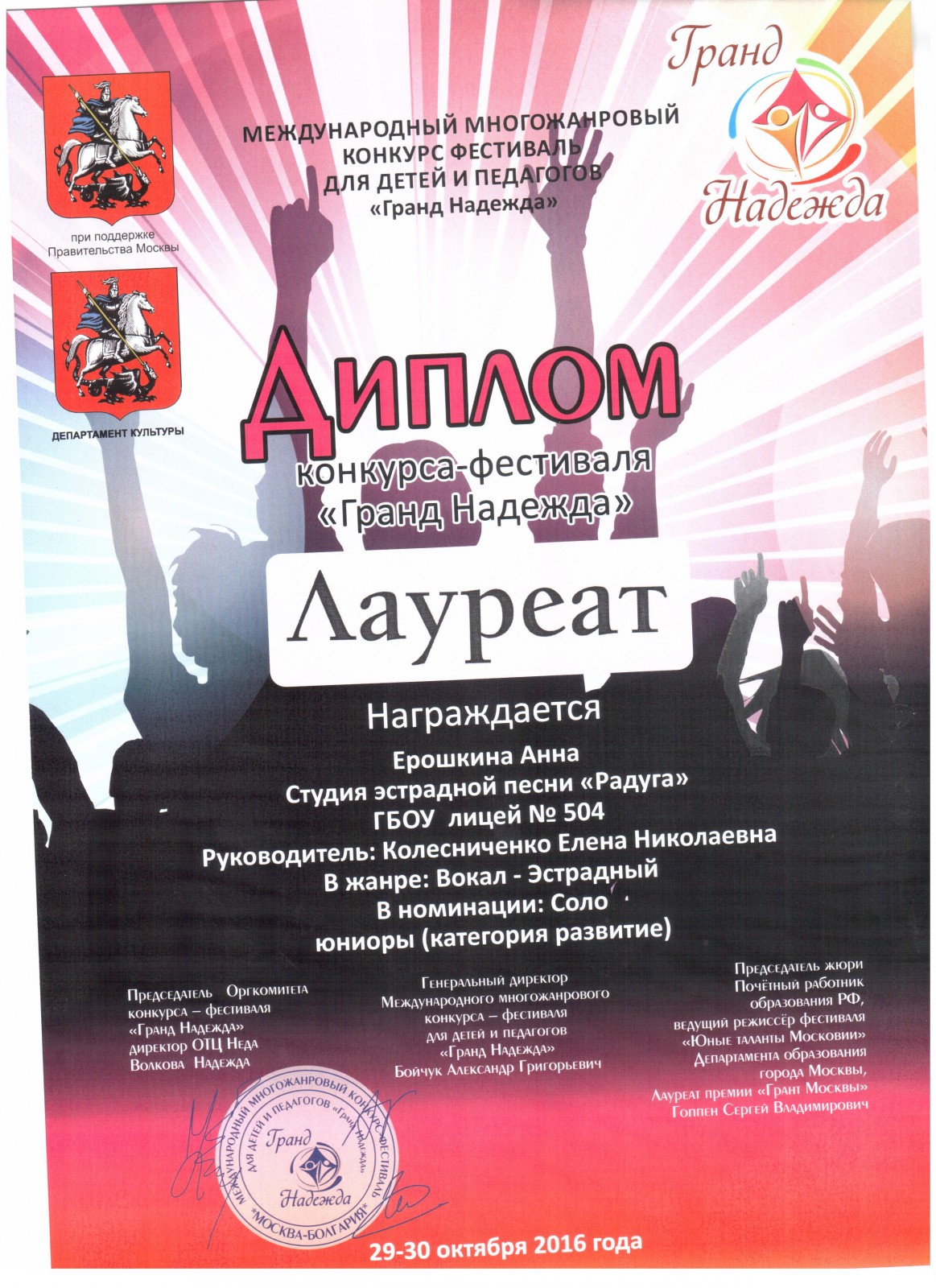 Ерошкина Анна дипломант ЮДМ осень 2014