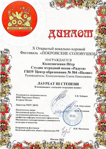 Диплом Колесниченко Петр [Покровские соловушки]