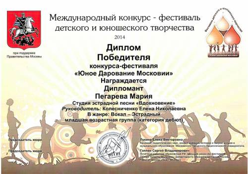 Пегарева Мария победитель-дипломант ЮДМ 2014