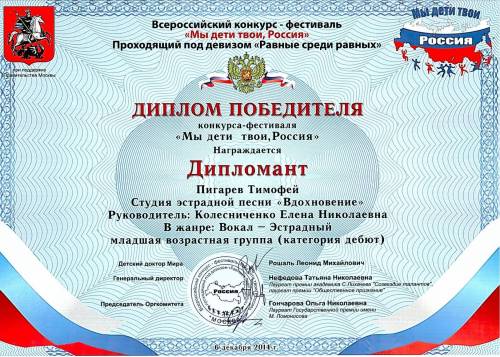 Пигарев Тимофей дипломант Всероссийского конкурса